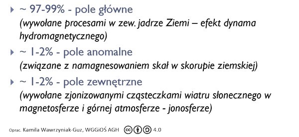 Pole magnetyczne Ziemi można ogólnie podzielić na: