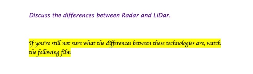 Source: Electrified, Lidar vs Radar – Autonomous Driving | Did Elon Change His Mind?!, 13.12.2019 [accessed: 30.08.2020]. Available on YouTube: https://www.youtube.com/watch?v=-HRSD3Y_afY